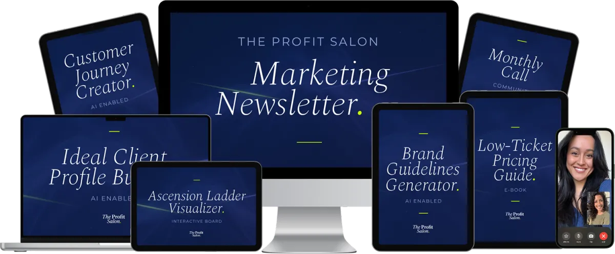 These, combined with ten years of working exclusively inside this business model, means every issue of the Profit Salon Marketing Newsletter gives you a clear, specific read on what's worth your attention this month, and what isn't.